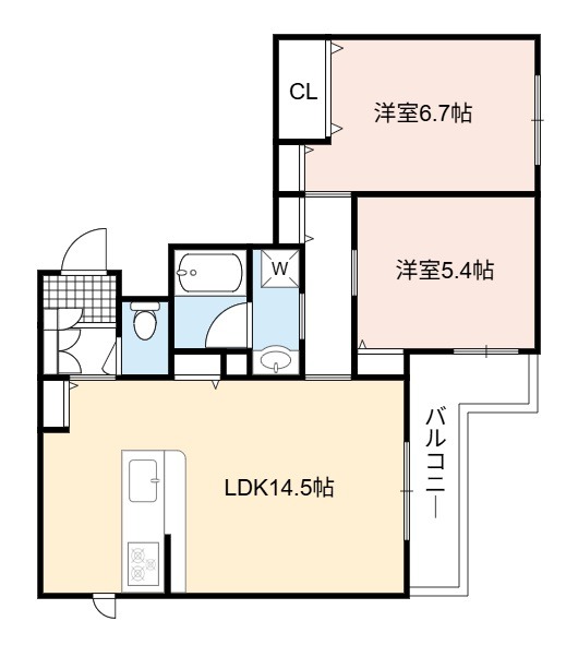 | 間取り詳細 | LDK 14.5畳 、 洋室 6.7畳 、 洋室 5.4畳 |