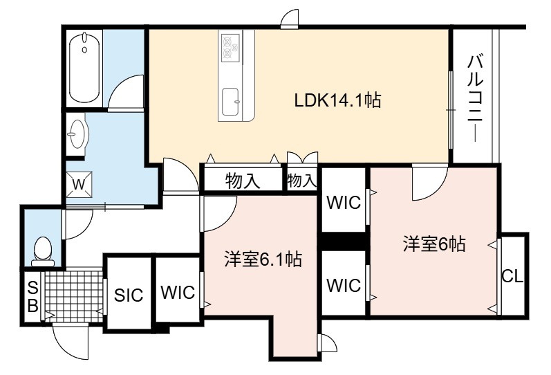 | 間取り詳細 | LDK 13.9畳 、 洋室 6.1畳 、 洋室 6畳 |