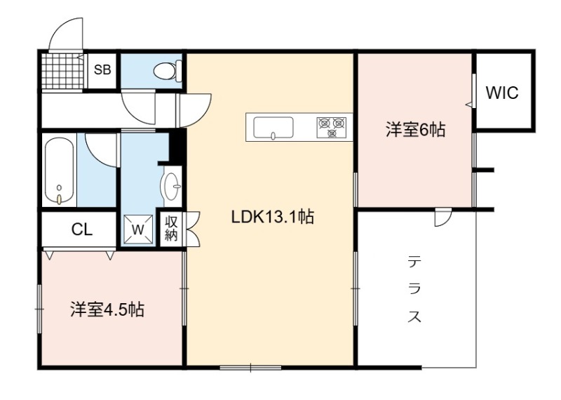 | 間取り詳細 | LDK 13.3畳 、 洋室 6畳 、 洋室 4.5畳 |