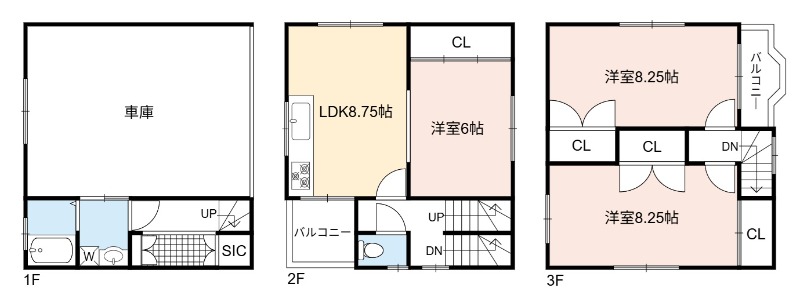洋室 8.25畳 洋室 8.25畳 洋室 6畳 |