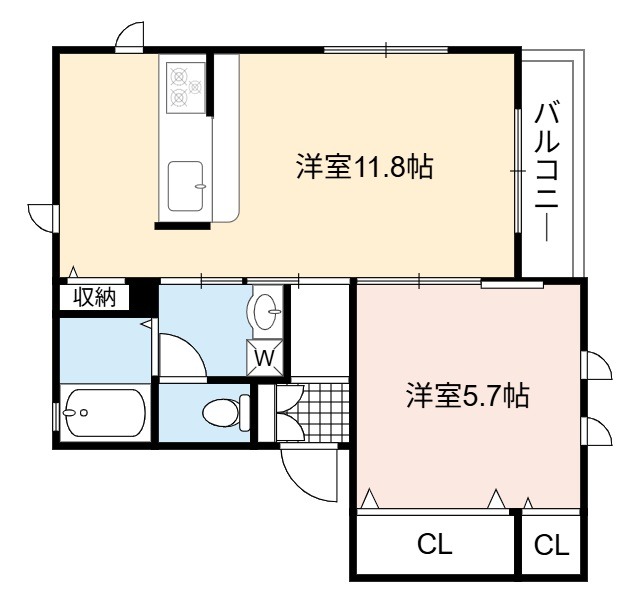| 間取り詳細 | LDK 11.8畳 、 洋室 5.7畳 |
