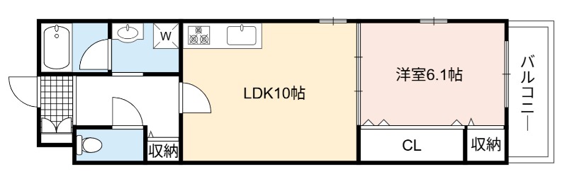 | 間取り詳細 | LDK 10畳 、 洋室 6.1畳 |