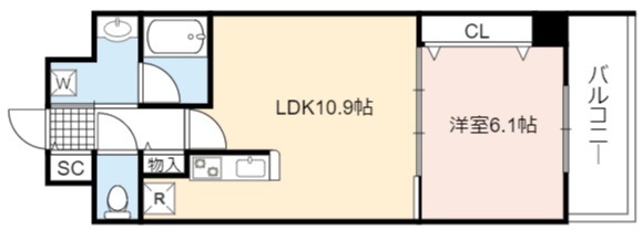 | 間取り詳細 | LDK 10.9畳 、 洋室 6.1畳 |