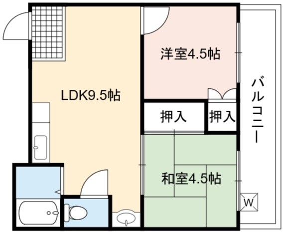| 間取り詳細 | LDK 9.5畳 、 洋室 4.5畳 、 和室 4.5畳 |