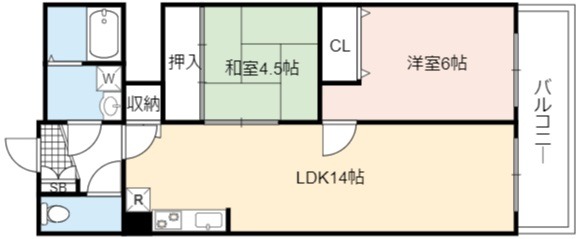 | 間取り詳細 | LDK 14畳 、 洋室 6畳 、 和室 4.5畳 |