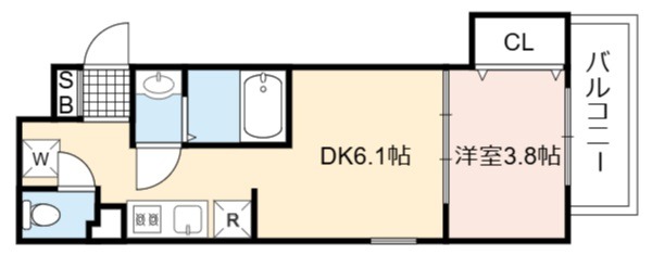 | 間取り詳細 | DK 6.1畳 、 洋室 3.8畳 |