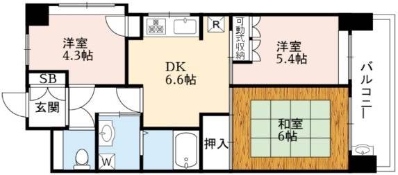 | 間取り詳細 | DK 6.6畳 、 洋室 5.4畳 、 洋室 4.3畳 、 和室 6畳 |