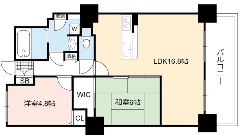 | 間取り詳細 | LDK 16.8畳 、 和室 6畳 、 洋室 4.8畳 |