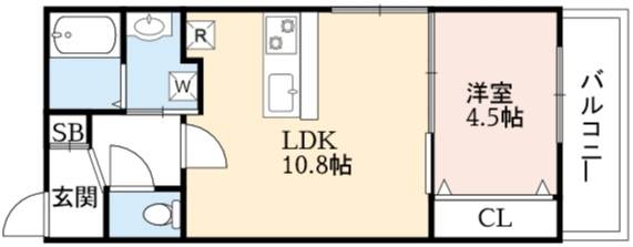 | 間取り詳細 | LDK 10.8畳 、 洋室 4.5畳 |