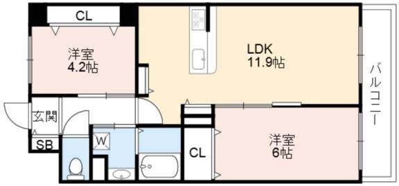 | 間取り詳細 | LDK 11.9畳 、 洋室 6畳 、 洋室 4.2畳 |