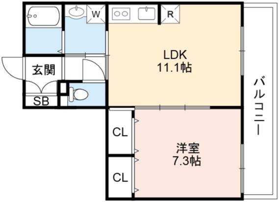 | 間取り詳細 | LDK 11.1畳 、 洋室 7.3畳 |