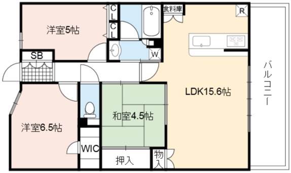 | 間取り詳細 | LDK 15.6畳 、 洋室 6.5畳 、 洋室 5畳 、 和室 4.5畳 |