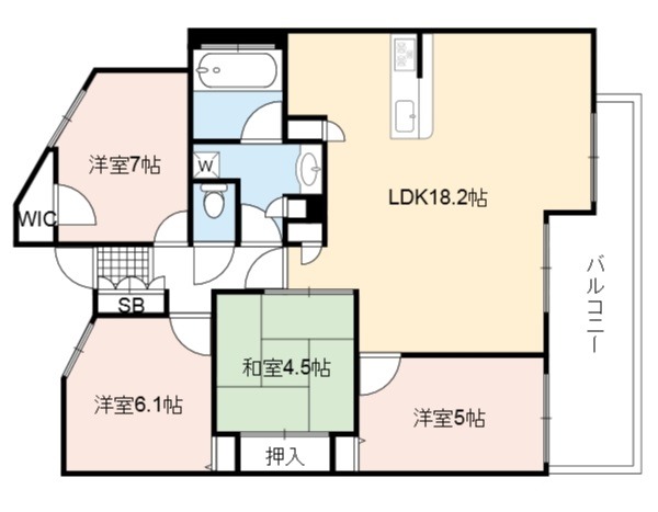 | 間取り詳細 | LDK 18.2畳 、 洋室 7畳 、 洋室 6.1畳 、 洋室 5畳 、 和室 4.5畳 |