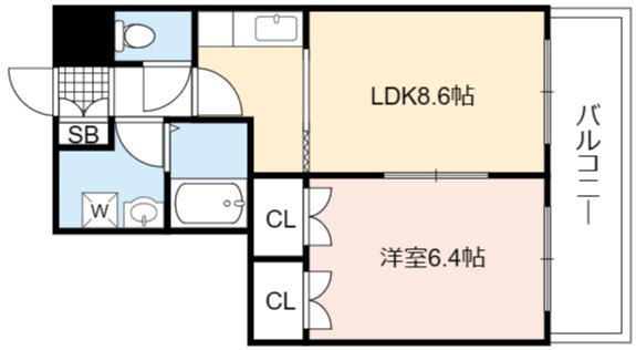 | 間取り詳細 | LDK 8.6畳 、 洋室 6.4畳 |
