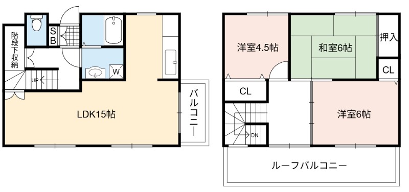 | 間取り詳細 | LDK 15畳 、 洋室 6畳 、 和室 6畳 、 洋室 4.5畳 |