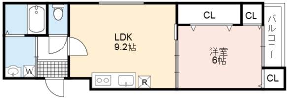 | 間取り詳細 | LDK 9.2畳 、 洋室 6畳 |