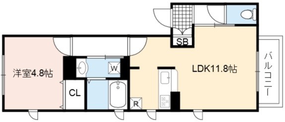 | 間取り詳細 | LDK 11.8畳 、 洋室 4.8畳 |
