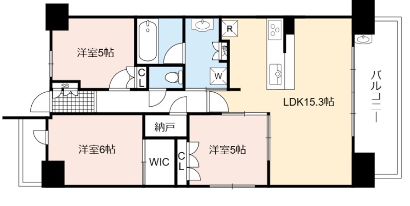 | 間取り詳細 | LDK 15.3畳 、 洋室 6畳 、 洋室 5畳 、 洋室 5畳 |