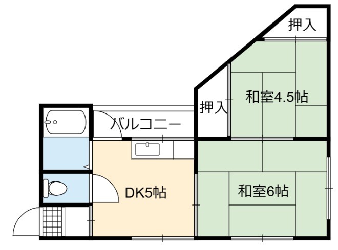 | 間取り詳細 | DK 5畳 、 和室 6畳 、 和室 4.5畳 |