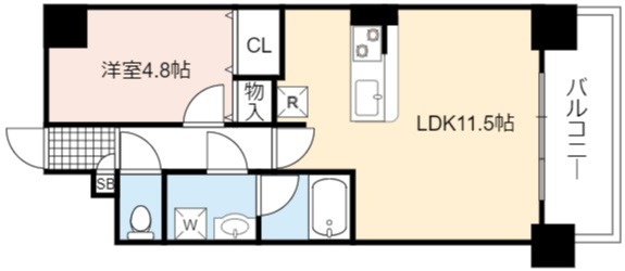 | 間取り詳細 | LDK 11.5畳 、 洋室 4.8畳 |