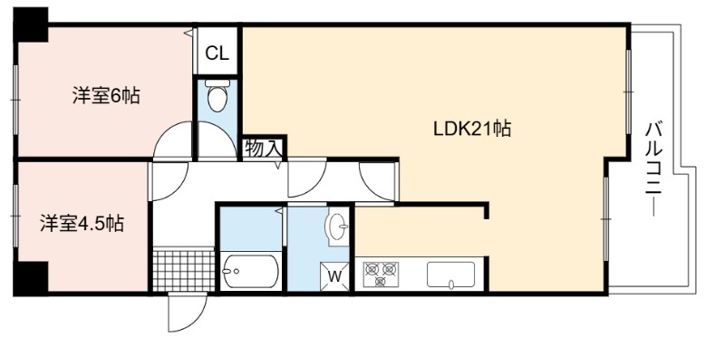 | 間取り詳細 | LDK 21畳 、 洋室 6畳 、 洋室 4.5畳 |