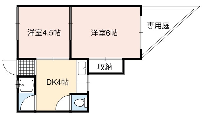 | 間取り詳細 | DK 4畳 、 洋室 6畳 、 洋室 4.5畳 |