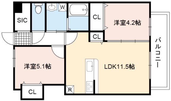 | 間取り詳細 | LDK 11.5畳 、 洋室 5.1畳 、 洋室 4.2畳 |