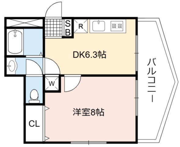 | 間取り詳細 | DK 6.3畳 、 洋室 8畳 |