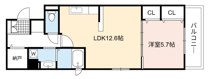 | 間取り詳細 | LDK 12.6畳 、 洋室 5.7畳 |