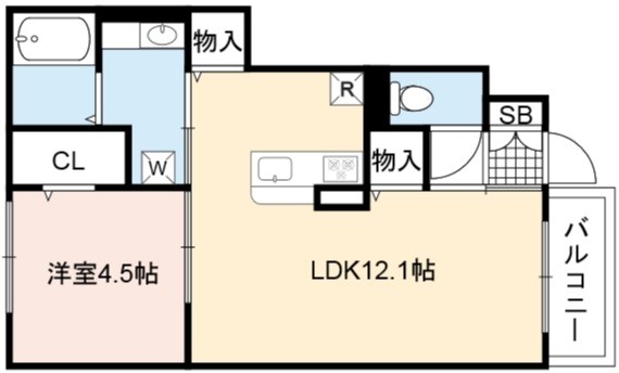 | 間取り詳細 | LDK 12.1畳 、 洋室 4.5畳 |