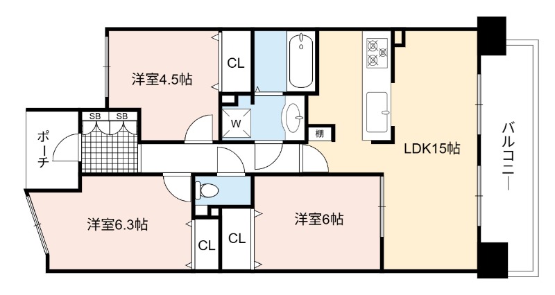 洋室 6.3畳 洋室 6畳 洋室 4.5畳 |