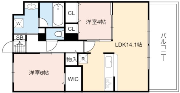 | 間取り詳細 | LDK 14.1畳 、 洋室 6畳 、 洋室 4畳 |