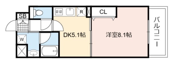 | 間取り詳細 | DK 5.1畳 、 洋室 8.1畳 |