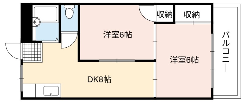 | 間取り詳細 | DK 8畳 、 洋室 6畳 、 洋室 6畳 |