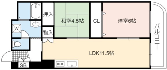 | 間取り詳細 | LDK 11.5畳 、 洋室 6畳 、 和室 4.5畳 |