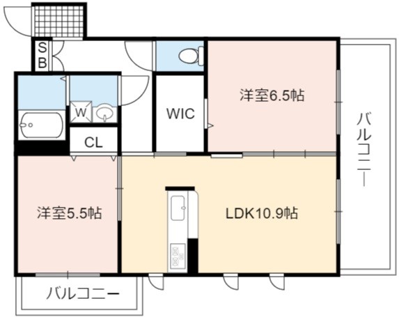 | 間取り詳細 | LDK 10.9畳 、 洋室 6.5畳 、 洋室 5.5畳 |