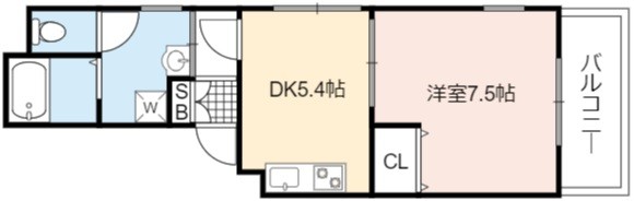 | 間取り詳細 | DK 5.4畳 、 洋室 7.5畳 |