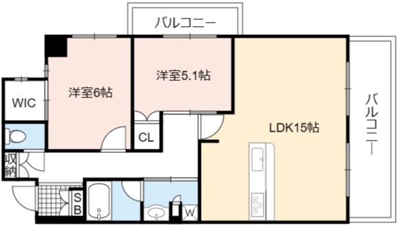 | 間取り詳細 | LDK 15畳 、 洋室 6畳 、 洋室 5.1畳 |