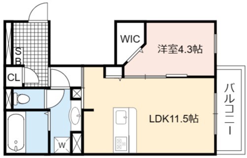 | 間取り詳細 | LDK 11.5畳 、 洋室 4.3畳 |