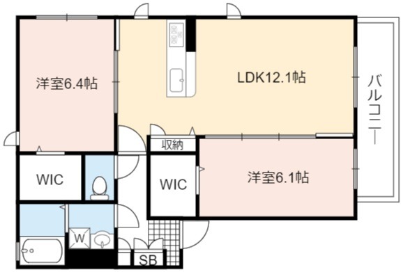 | 間取り詳細 | LDK 12.1畳 、 洋室 6.4畳 、 洋室 6.1畳 |