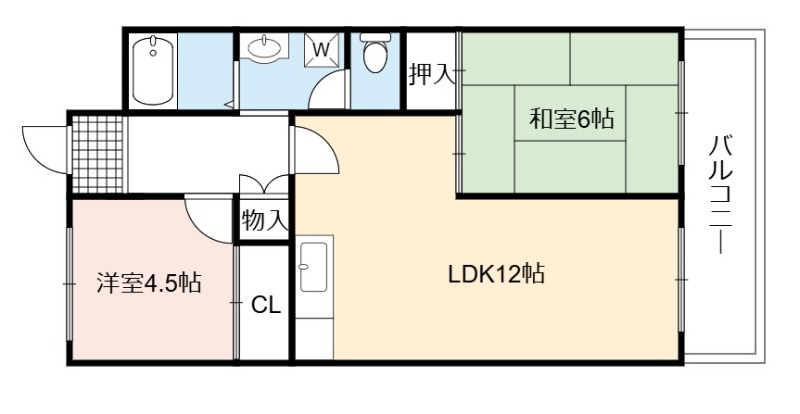 | 間取り詳細 | LDK 12畳 、 和室 6畳 、 洋室 4.5畳 |
