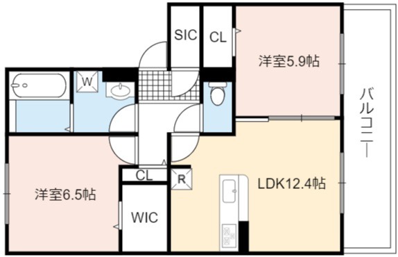 | 間取り詳細 | LDK 12.4畳 、 洋室 6.5畳 、 洋室 5.9畳 |