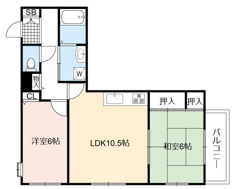 | 間取り詳細 | LDK 10.5畳 、 洋室 6畳 、 和室 6畳 |