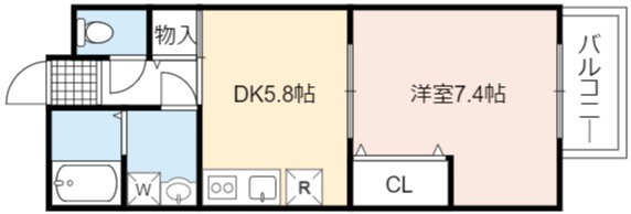 | 間取り詳細 | DK 5.8畳 、 洋室 7.4畳 |