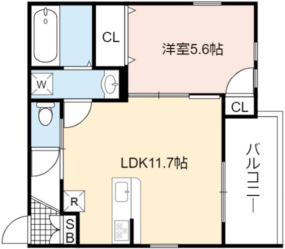 | 間取り詳細 | LDK 11.7畳 、 洋室 5.6畳 |