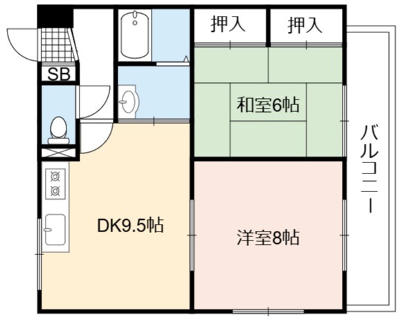 | 間取り詳細 | DK 9.5畳 、 洋室 8畳 、 和室 6畳 |