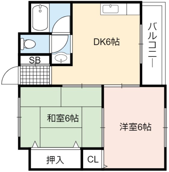 | 間取り詳細 | DK 6畳 、 洋室 6畳 、 和室 6畳 |
