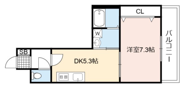 | 間取り詳細 | DK 5.3畳 、 洋室 7.3畳 |