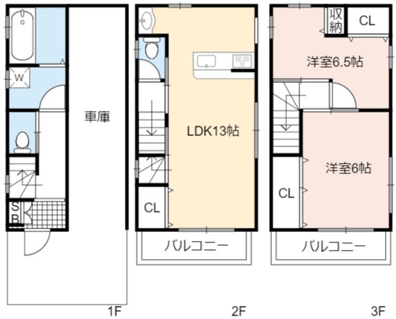 | 間取り詳細 | LDK 13畳 、 洋室 6.5畳 、 洋室 6畳 |