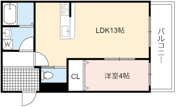 | 間取り詳細 | LDK 13畳 、 洋室 4畳 |